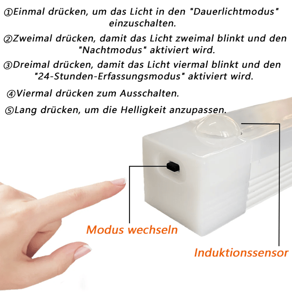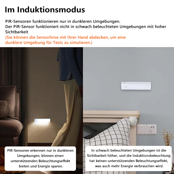 💖😊Stabiles Licht und Induktion: Einmaliges Drücken des Schalters für konstantes Licht, das zweite Mal für Induktion, nochmals drücken, um es auszuschalten.